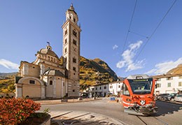 Quando si parla del Treno del Bernina, è inevitabile pensare all’alta montagna, all’aria pura delle maestose Alpi che segnano il confine tra Italia e Svizzera. Forse però, non tutti sanno che il Trenino Rosso, parte dall’Italia